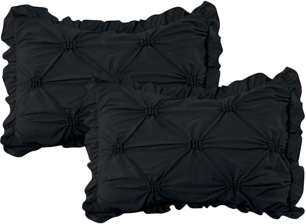 • Dimensions de l’ensemble d’édredon de taille King : 1 édredon de 264 cm x 218 cm / 2 taies d’oreiller de 51 cm x 91 cm / 2 coussins brodés de 46 cm x 46 cm / 1 coussin de petit-déjeuner de 30 cm x 46 cm / 1 jupe de lit de 198 cm x 203 cm + 36 cm